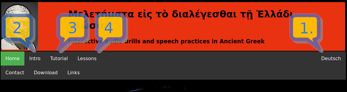 - If you did not understand the recording, you can click on the fields labeled "Διδάσκαλος" and "Μαθητής" below the icons to display the transcript of the spoken words. Repeated clicking will toggle the transcipt off and on.